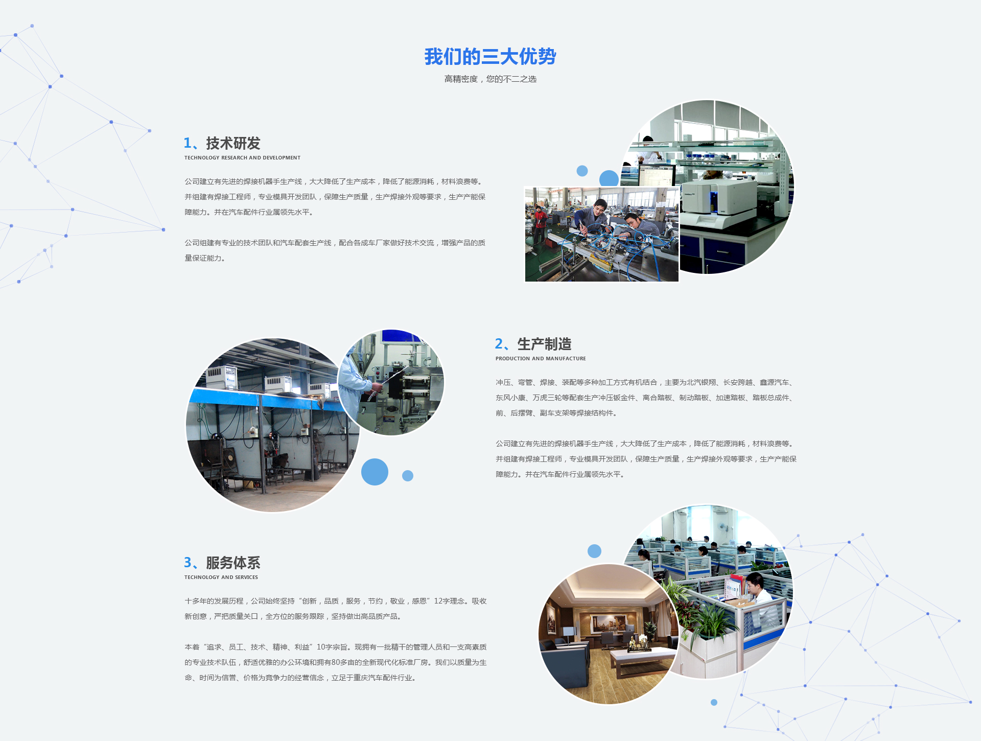 公司由建廠初期單一的沖壓加工逐步發(fā)展到?jīng)_壓、彎管、焊接、裝配等多種加工方式有機(jī)結(jié)合,主要為北汽銀翔、長安跨越、鑫源汽車、東風(fēng)小康、萬虎三輪等配套生產(chǎn)沖壓鈑金件、離合踏板、制動(dòng)踏板、加速踏板、踏板總成件、前、后擺臂、副車支架等焊接結(jié)構(gòu)件,深受用戶好評(píng)...